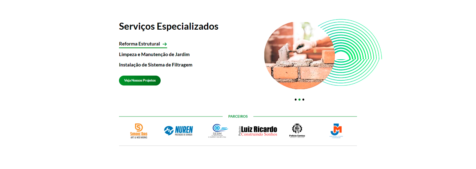 - Detalhamento de serviços e áreas de operação com portfólio de projetos.