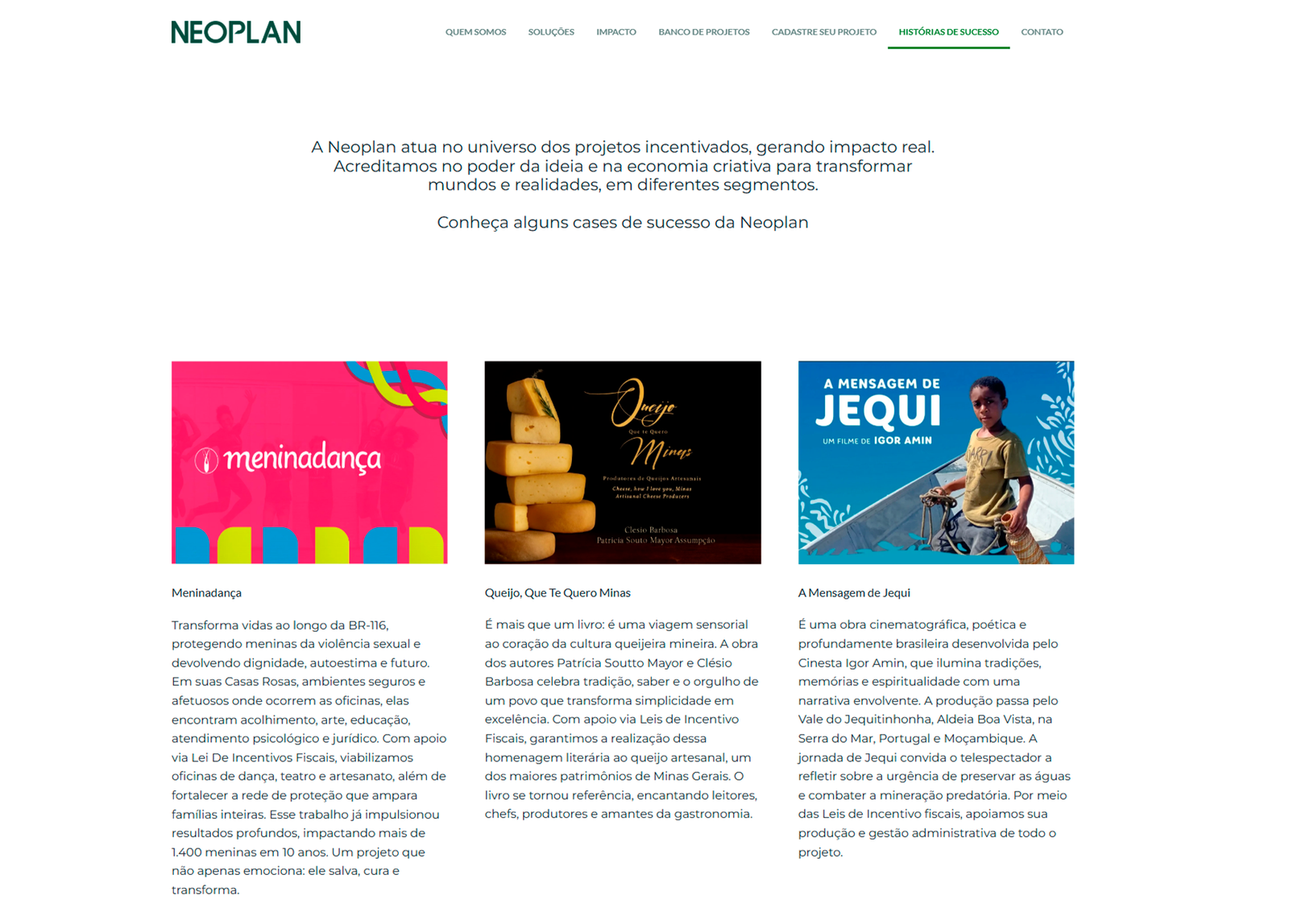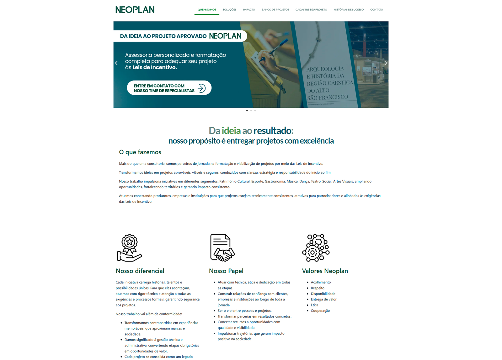 Na Neoplan, cada projeto é cadastrado com campos estratégicos para apresentar: